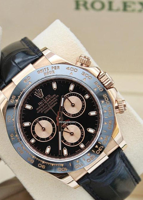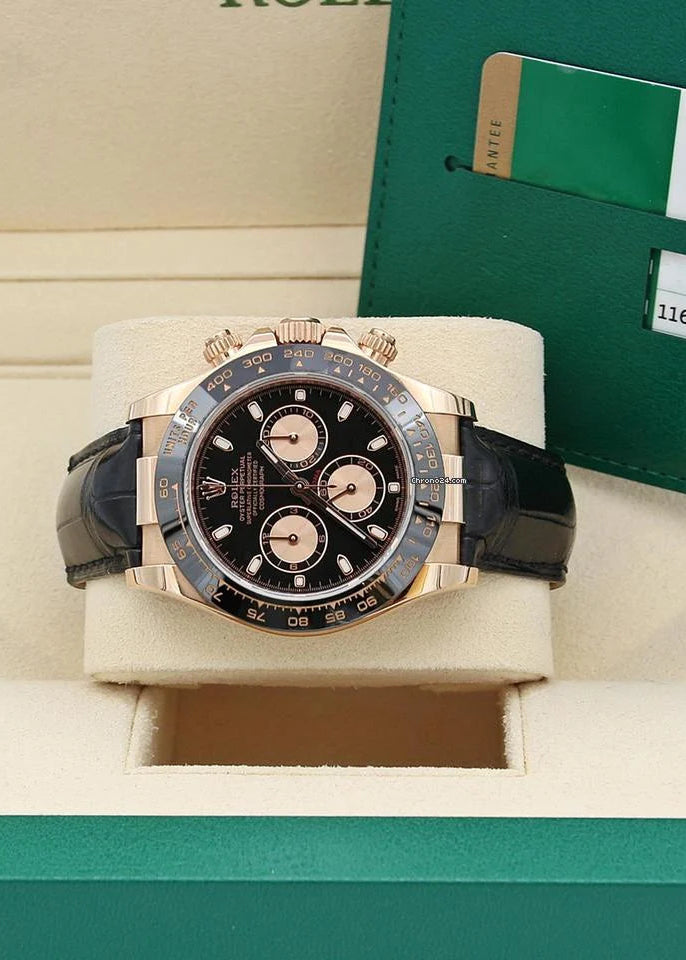 Rolex Daytona ref. 116515 Black with pink gold subdials - Rubber-B strap - Full Set